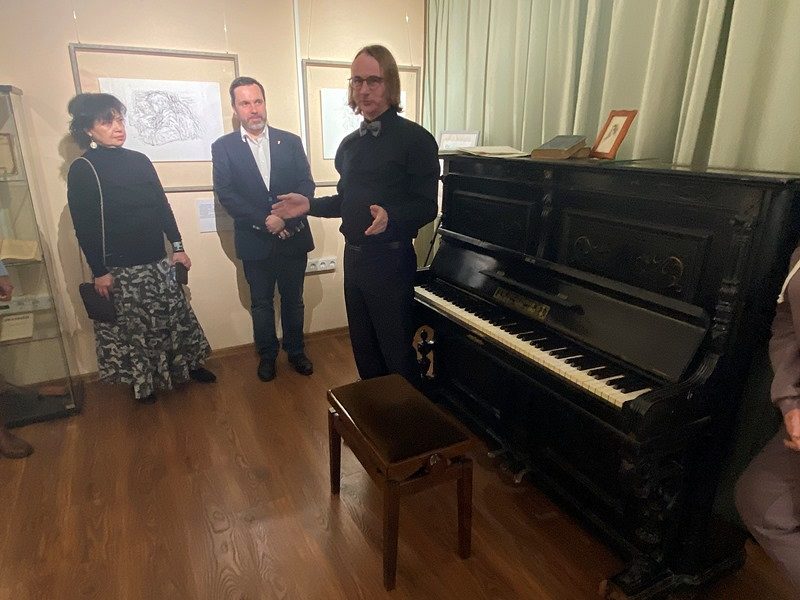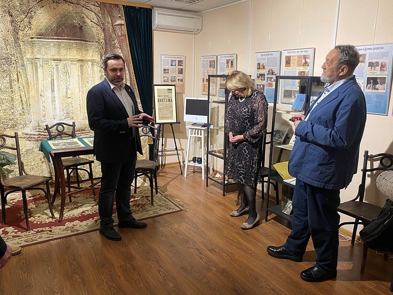 Об истории создания музея, находках и последних открытиях рассказал гостям основатель и руководитель Музея Леонида Андреева в Бутове Антон Никулин. В последние месяцы в музее произошло серьезное обновление экспозиции, во время обзорной экскурсии впервые были показаны подлинные документы и письма Леонида Андреева, представлена новая экспозиция, посвященная судьбе сына писателя – Даниила Андреева. Также отдельно была представлена уникальная выставка подлинных акварелей художника Михаила Гурова, которые были выполнены в издательстве «Советский писатель» в 1991 году как иллюстрации к сборнику пьес Леонида Андреева.