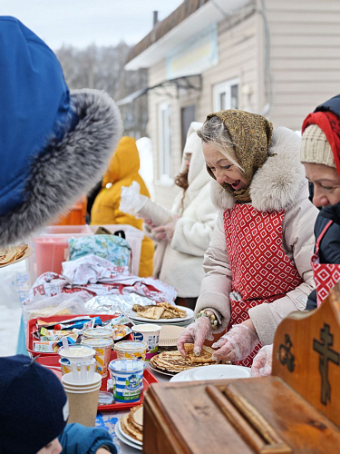 Гостей щедро угощали блинами всех видов, горячим чаем и другими согревающими напитками, с любовью и заботой приготовленными в трапезной храма и самими прихожанами – угощения хватило всем!