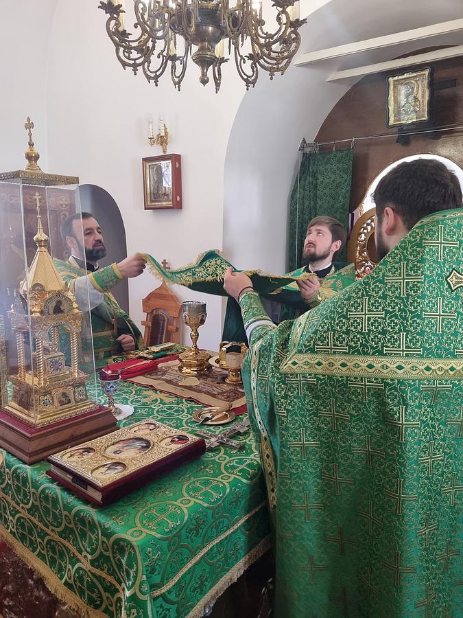 После Божественной Литургии была совершена Великая вечерня с чтением коленопреклоненных молитв.