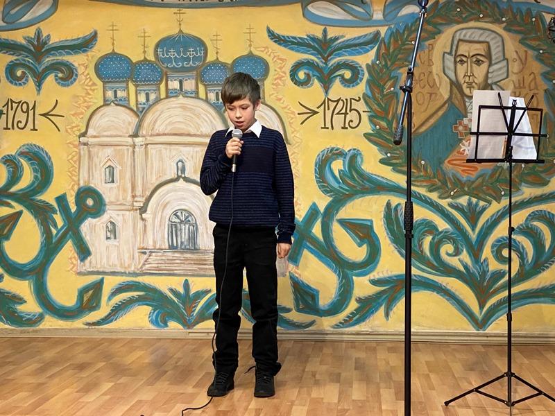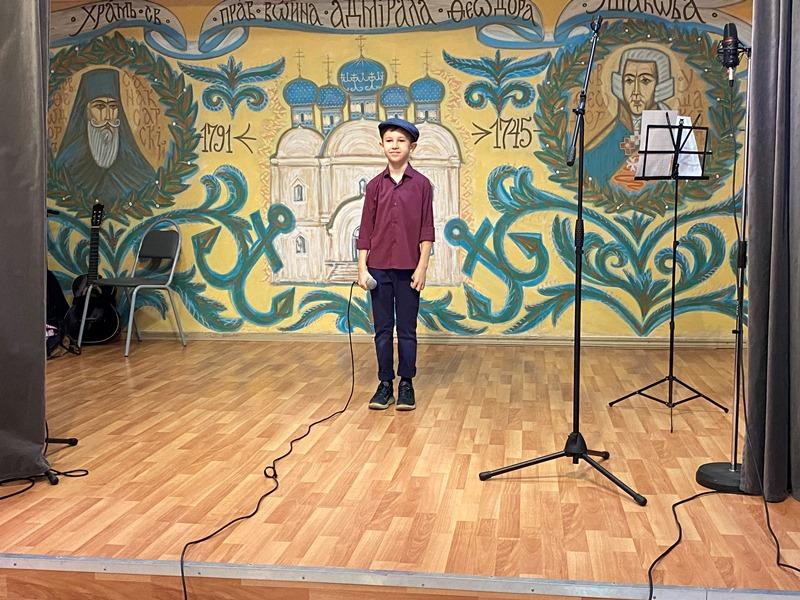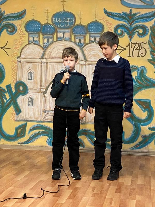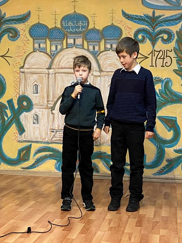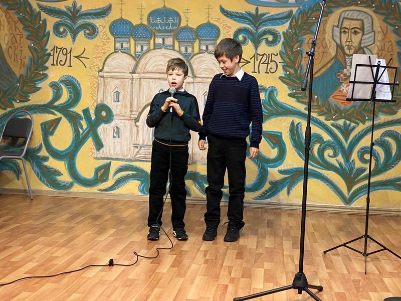 На праздничном концерте выступили и учащиеся Воскресной школы Подворья. Братья Федор и Иван Зверевы и прочитали стихотворения о непобедимом адмирале Ушакове и Православии.