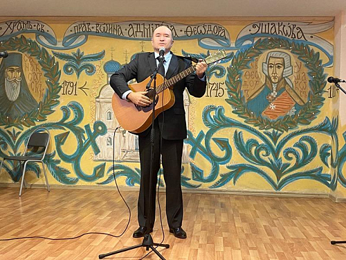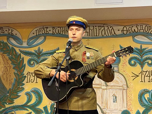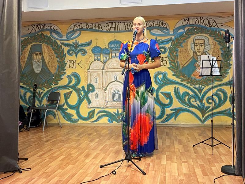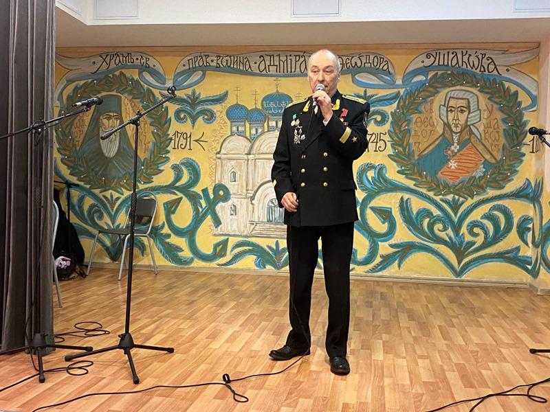 Центром программы стало исполнение новой песни об адмирале Ушакове и его храме "Колокола России", которую написала и исполнила поэт и музыкант, руководитель клуба авторской песни, Светлана Холодникова. Она исполнила новую песню вместе с ансамблем "Сударушки".