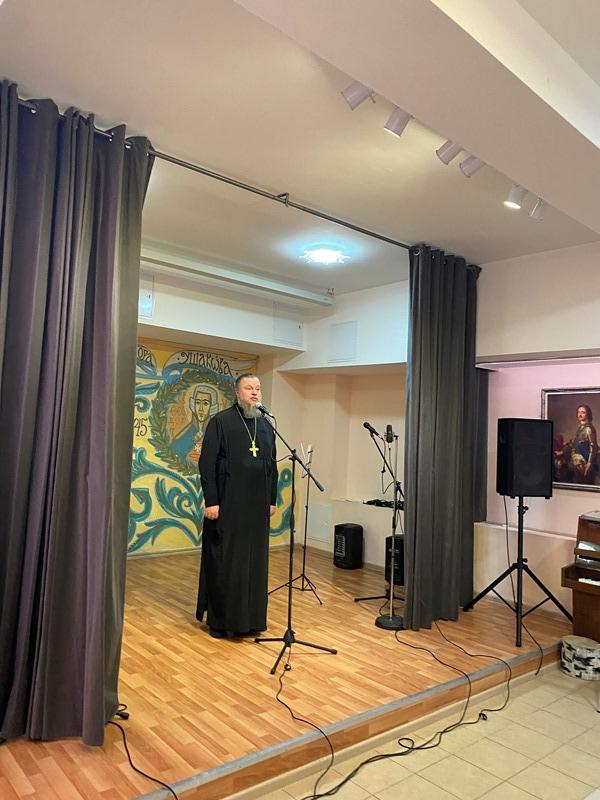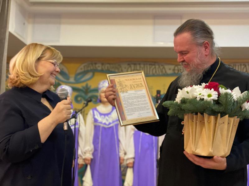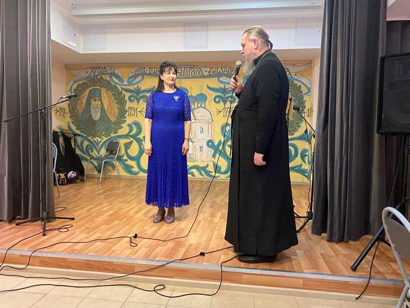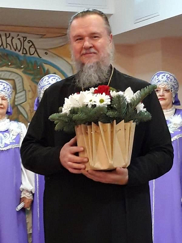 На концерте между номерами звучали поздравления с праздником Патриаршего подворья и лично игумену Дамиану в связи с 10-летием его настоятельского служения.