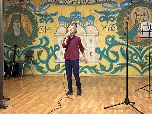 Продолжил концерт настоящий артист, солист театра-студии «Непоседы», лауреат первой степени по эстрадному вокалу в России и за рубежом: Роберт Штаф. Игумен Дамиан тепло поблагодарил юного артиста и пожелал ему творческих успехов.