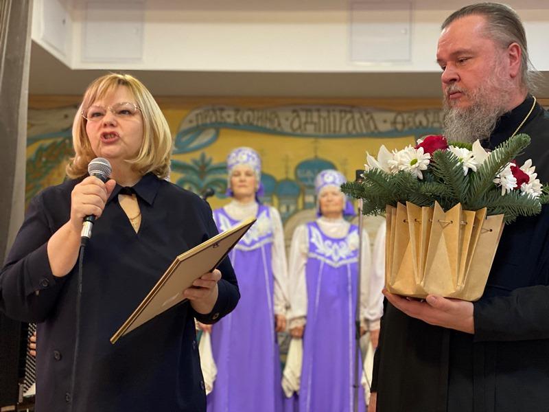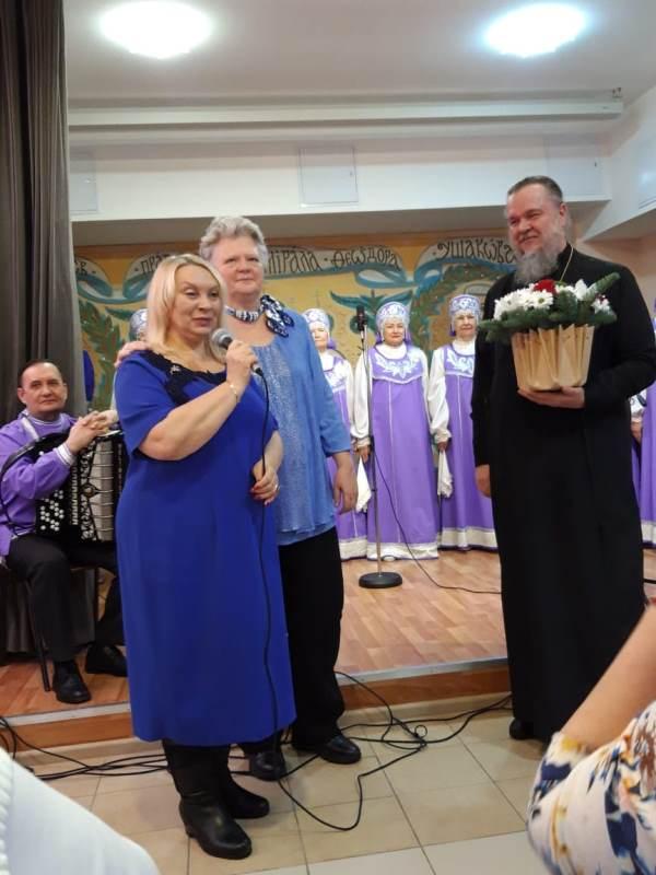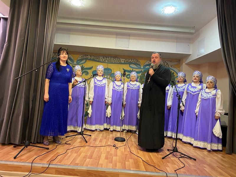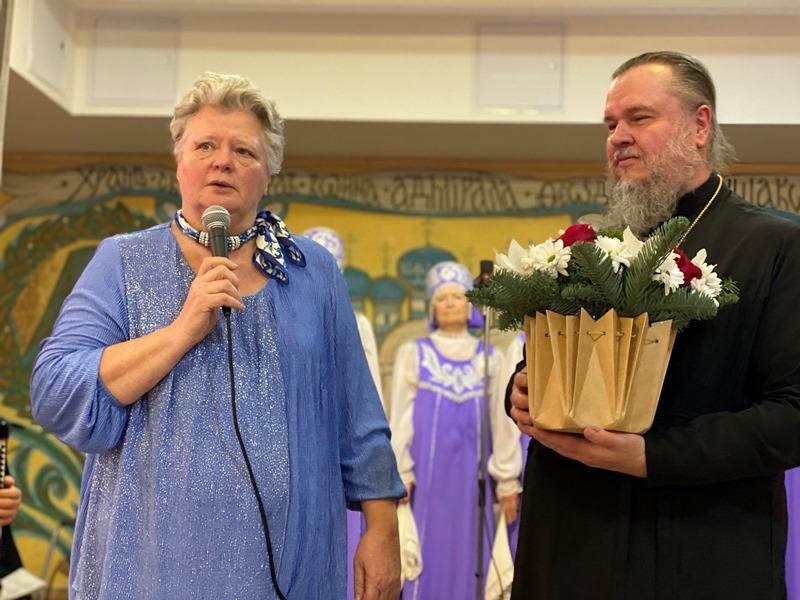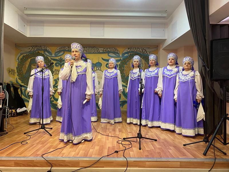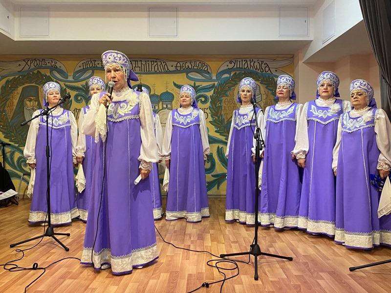 После исполнения песен морской тематики артисты хора «Сударушки» получили от настоятеля перекидной настенный календарь на 2023 год, посвященный святому адмиралу Ушакову.