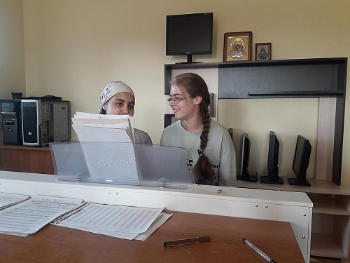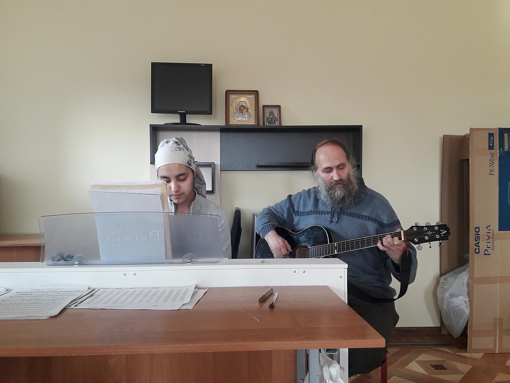 В продолжение встречи Дарья совместно с алтарником храма Александром Боголаповым исполнили импровизацию на двух инструментах – фортепиано и гитаре. В завершение мероприятия Александр исполнил под гитару свои авторские песни христианской и фольклорной тематики.
