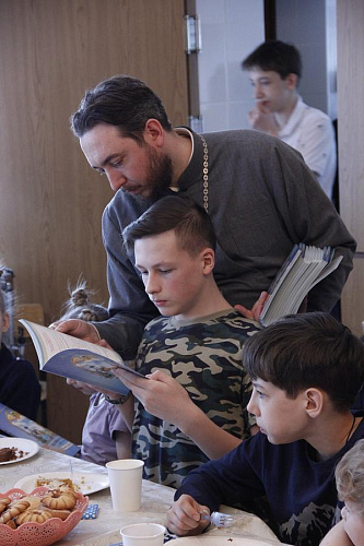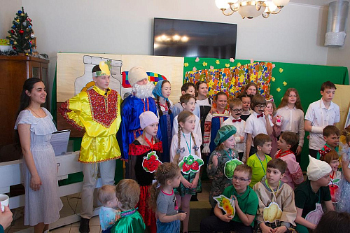 Воспитанники Воскресной школы показали сценку «Репка», а также спели песни: «Христос воскрес» на слова А. Майкова и «Пасху радостно встречаем» на слова В. Кузьменкова. Ученик Воскресной школы Борис Шорин с концертмейстером исполнил пьесу для флейты И. Шильцевой «Первая пятерка в дневнике».