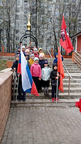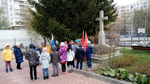 Почтить память земляков пришли учащиеся 1В класса общеобразовательной школы № 113 (всего 15 школьников) с преподавателем.