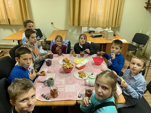 Закончился первый учебный день в Воскресной школе традиционным чаепитием.