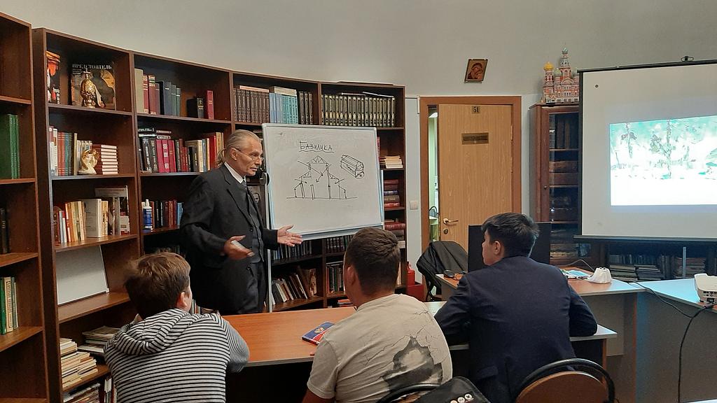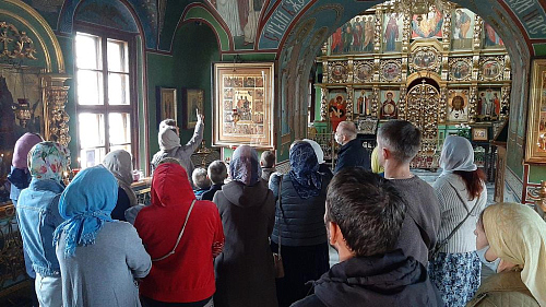 Когда занятия закончились, преподаватель курса Истории христианского искусства Орлова Ирина Борисовна провела в храме традиционную лекцию для первоклассников, их родителей и слушателей взрослой группы первого года обучения. Она рассказал об истории храма свв. Бориса и Глеба, его внутреннем убранстве, иконах и святынях.