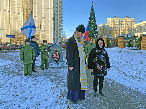 8 декабря, накануне Дня Героев России, в память Дня воинской славы России - Дня начала контрнаступления советских войск против немецко-фашистских войск в битве под Москвой, в Южном Бутове, на Аллее Народной доблести, около закладного камня на месте будущей установки памятника-обелиска в память Народного ополчения города Москвы – защитников Столицы, было проведено памятное мероприятие.