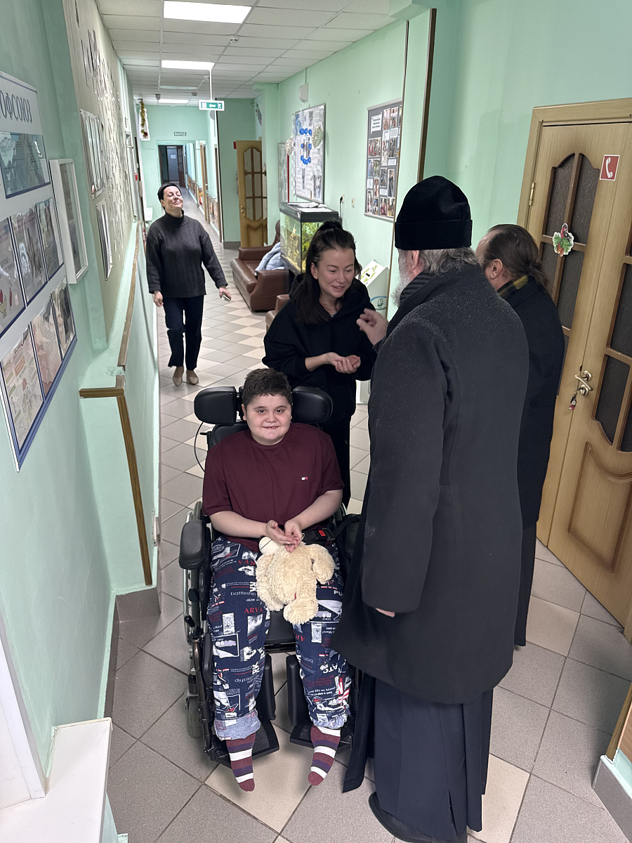 В Социальном доме Обручевский митрополит Владимир пообщался с сотрудниками и ознакомился с условиями проживания воспитанников - детей с ограниченными возможностями.