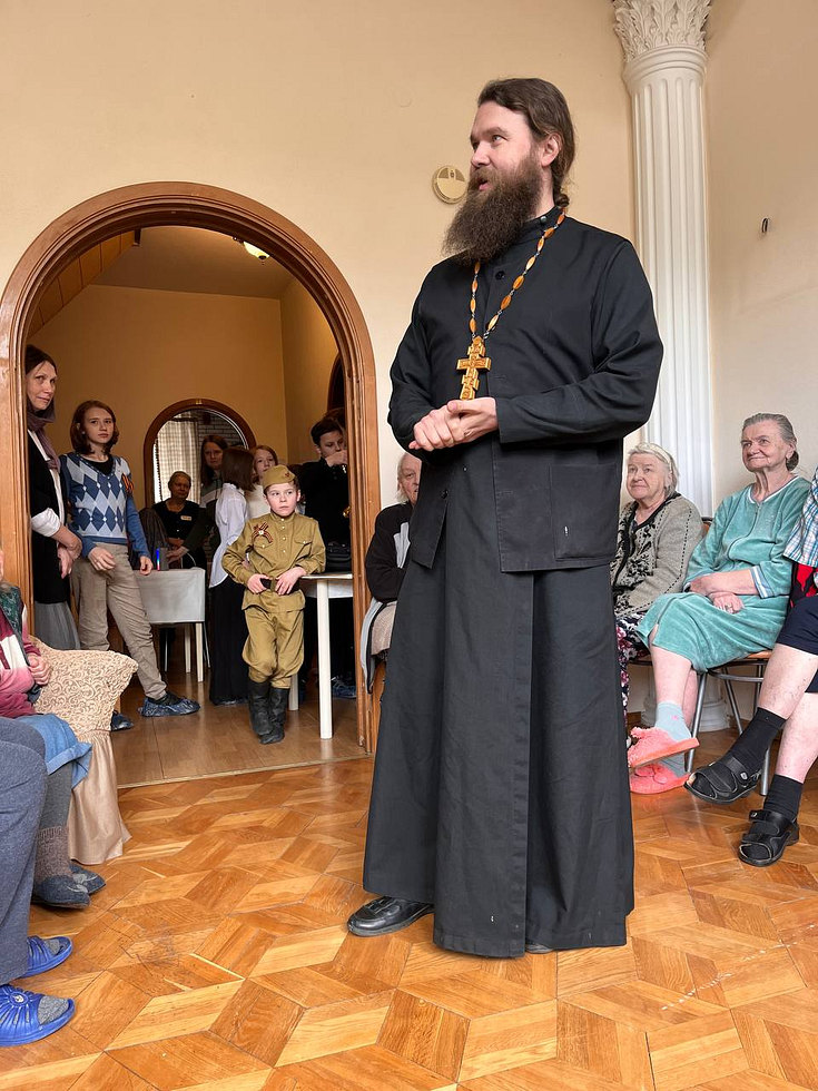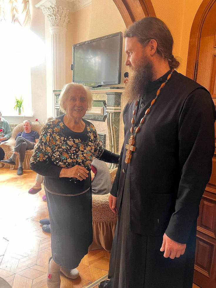 9 мая 2024 года волонтеры храма иконы Божией Матери "Умягчение злых сердец" в Конькове и молодежного актива “Добрые сердца” во главе с настоятелем храма иереем Николаем Алешиным посетили пансионат для пожилых людей “Забота и уют”, чтобы поздравить дорогих бабушек и дедушек со Светлым праздником Пасхи Христовой и Днем Победы.