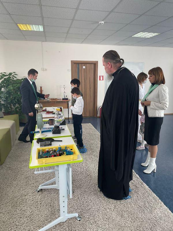 Настоятель лично посетил многочисленные помещения школы: аудитории, библиотеку, актовых зал, бассейн, медицинские и реабилитационные кабинеты, спортивные классы и многое другое, что создано для помощи детям и для их развития.