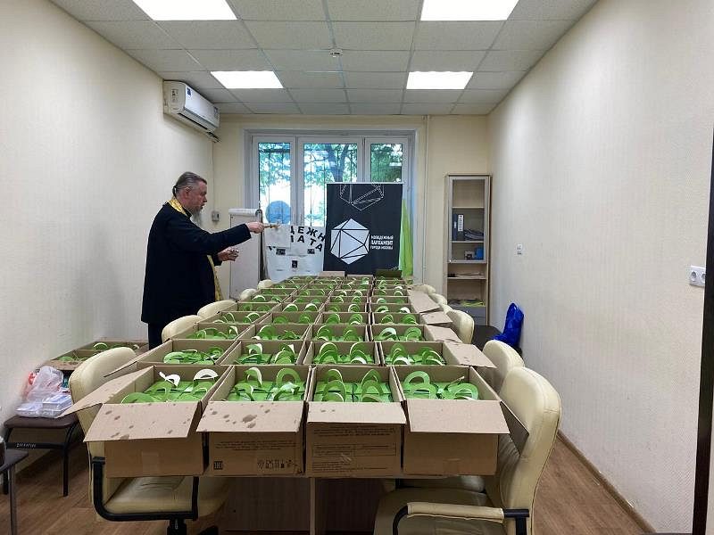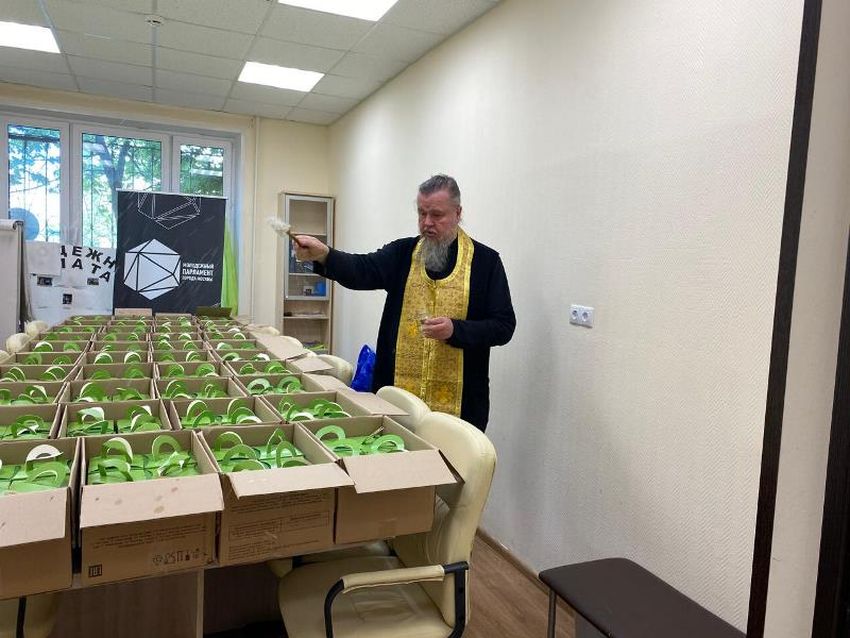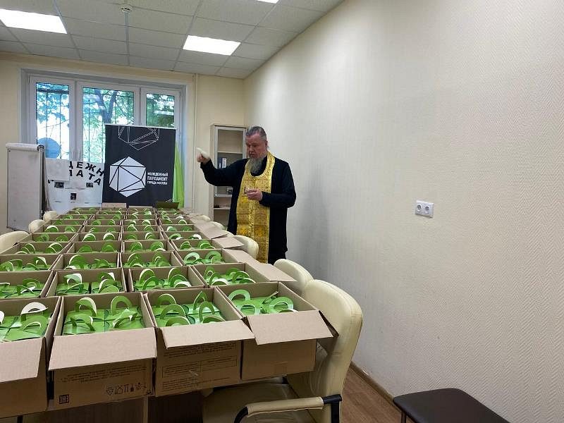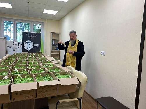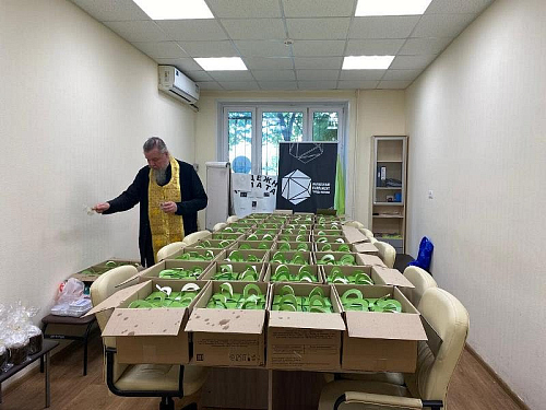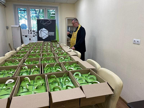 Настоятель освятил куличи и передал пасхальное поздравление всем тем, кому социальная служба донесет пасхальный подарок.