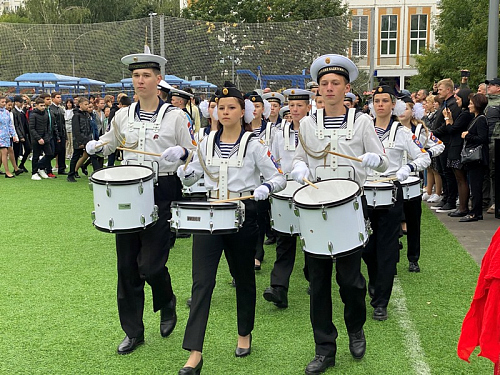Торжественным построением, прохождением и игрой на барабанах всех участников праздника порадовал отряд кадетов школы, юнармейцев, которые вышли на территорию в красивой форме и строевым шагом. Кадетская работа занимает важное метро в школьной жизни и украшает образовательное учреждение, наполняя его патриотическим настроем, дисциплиной и расширяя горизонты духовно-нравственного воспитания.