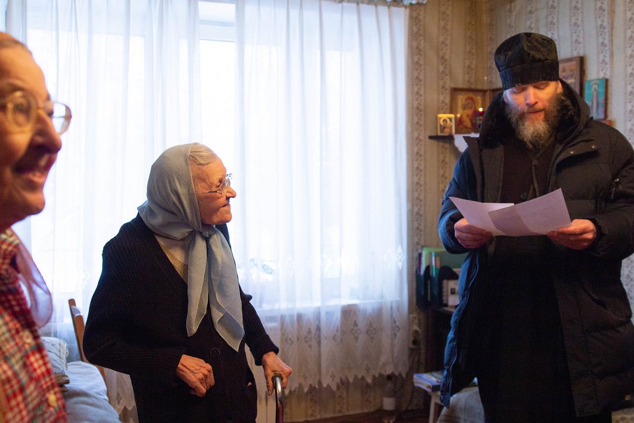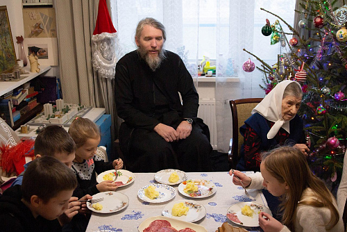 7 января после совершения Божественной Литургии духовенство и прихожане храма в честь иконы Пресвятой Богородицы «Отрада и Утешение» на Каховке посетили престарелых и болящих прихожан с Рождественскими поздравлениями.
