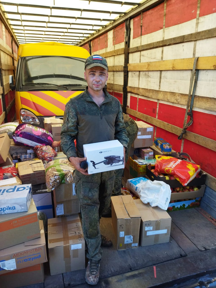 25 сентября добровольцы приехали в Мелитополь, где встретились с ребятами из ВДВ. Воинам передали генераторы, маскировочные сети, пончо, сухие супы, сухие души, доширак, маскировочные халаты "Леший", сладкое, носки, белье, воду, влажные салфетки.