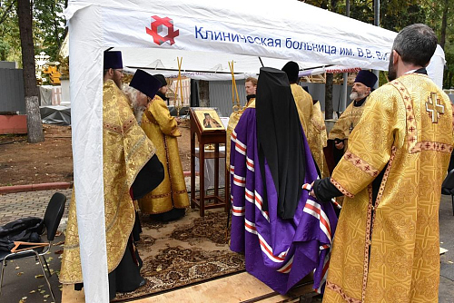 19 сентября 2022 года, в день воспоминания чуда Архистратига Михаила, бывшего в Хонех, епископ Сурожский Матфей совершил чин освящения крестов и куполов строящегося на территории Городской клинической больницы № 64 имени В.В. Виноградова храма святителя Луки, архиепископа Симферопольского и Крымского.
