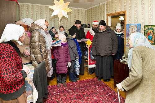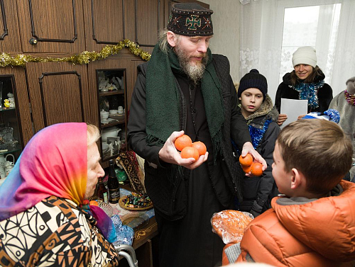 Более десяти адресов с обширной географией на карте – почти весь воскресный день духовенство и взрослые прихожане с детьми, молодежь и подростки поздравляли с Рождеством Христовым, пели праздничные тропари и святочные песни, дарили подаркии как могли делились радостью о родившемся Богомладенце.
