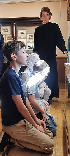 По прибытии в Лавру паломники проследовали в Успенский собор на позднюю Литургию. После окончания Богослужения детей и взрослых ожидала увлекательная экскурсия в Музей христианского искусства "Церковный-археологический кабинет", где экскурсовод Леонид, студент первого курса, мастерски удерживал внимание своих слушателей.