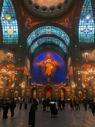 Знакомство с Патриаршим собором оставило неизгладимые впечатления даже у искушенных паломников. Высотой в девяносто пять метров он вызвал восхищение не только своим масштабом и величественностью, но также богатым внутренним убранством: мозаикой, скульптурой, живописью и витражами, сочетающимися в едином ансамбле.