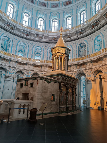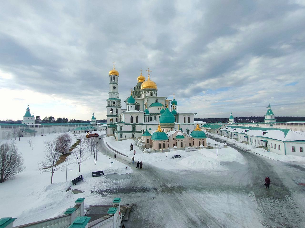 Следующей и самой главной целью нашей поездки – Воскресенский Новоиерусалимский ставропигиальный мужской монастырь. Русская Палестина – пространственный образ Святой Земли, созданный под Москвой по замыслу Святейшего Никона, Патриарха Московского и всея России (1605–1681) – своим пейзажем очень напоминает израильские земли. Те самые, где стоит Храм Гроба Господня. И свой Гефсиманский сад здесь есть (подобие того, где Иисус молился перед казнью). И река называется не Истра, как написано на картах, а Иордан (где крестился Христос). В Воскресенском соборе, по задумке патриарха Никона, все должно было рассказывать о пути Христа. Поэтому внутри храма мы видим Кувуклию (от греч. «опочивальня») — часовню, в которой находится Гроб Господень. У нас это как бы копия, символ того самого святого места. У входа — камень, подобный тому, с которого Ангел указал на место захоронения Христа, возле него обычно встают на колени и молятся. Если обходить храм по кругу, увидишь все этапы последних дней Иисуса. Это так называемые храмы Скорбного пути. Вот - храм-темница. В ней, с закованными ногами, он провел ночь перед казнью. Наверху — Голгофа. Крест для нее привезли по заказу самого Никона — из Иерусалима. А напротив входа в храм установлен камень миропомазания, на котором лежал Иисус, снятый с креста. На камне видна трещина — от фашистского взрыва. А справа от входа был похоронен патриарх Никон.