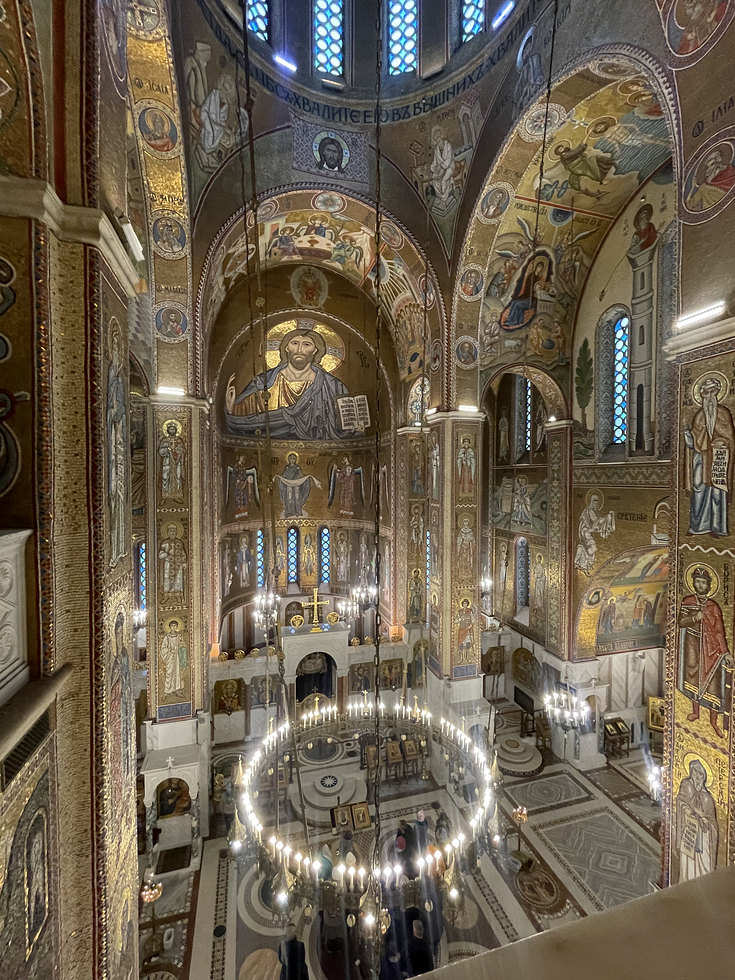 Основная часть храмасоздана и украшена по византийским канонам. Мозаичные изображения расположены по определённой системе. Сочетание классического наследия с византийскими и раннехристианскими традициями создают неповторимую стилистику внутреннего убранства храма.