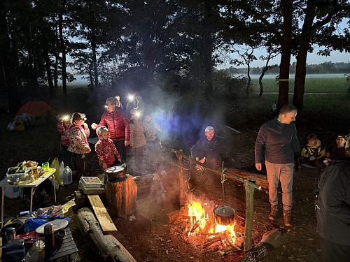 Дети были распределены на три команды, члены которой, помимо обустройства своего спального места, должны были потрудиться в устройстве лагеря – заготовить дрова, принести воду, дежурить по кухне. Были определены смены ночных дежурств у костра под руководством взрослых.