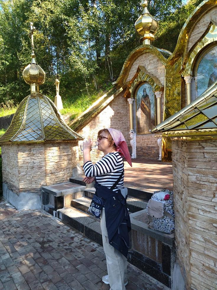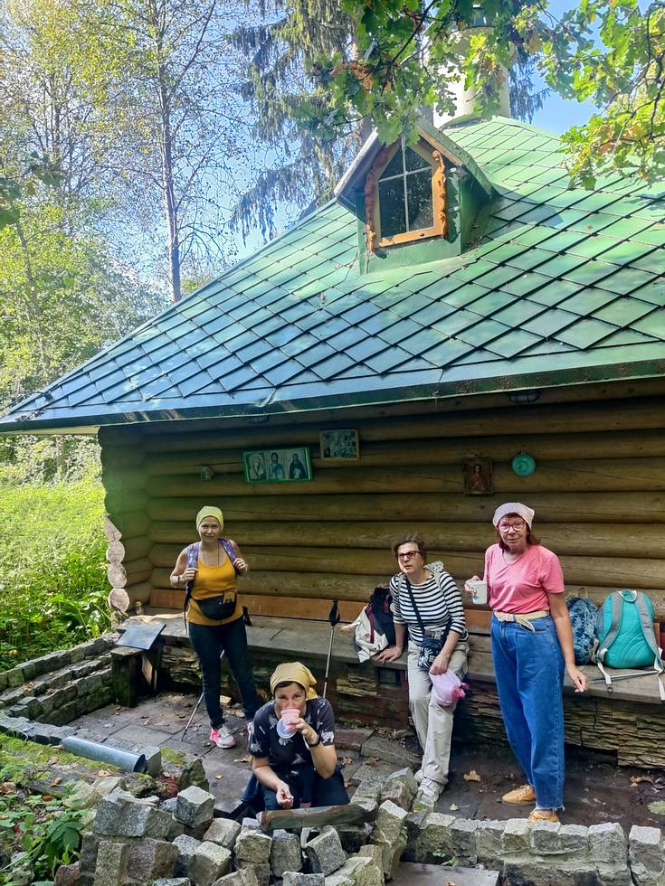 По пути попили святой воды у источника в честь Казанской иконы Божие Матери. 25 километров пути шли с молитвой, поэтому, радостные и, почти не уставшие, к вечеру добрались до монастыря. У мощей в Троицком соборе поблагодари преподобного за благополучное путешествие.