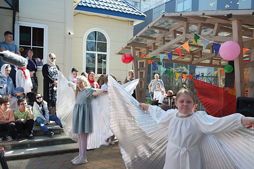 Праздник был подготовлен преподавателем и руководителем театральной студии Воскресной школы Семочкиной Ларисой Геннадьевной, при поддержке и активном участии родителей воспитанников Воскресной школы.