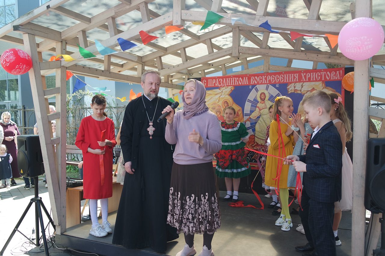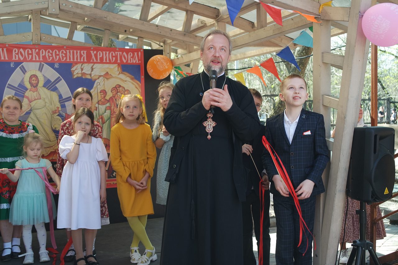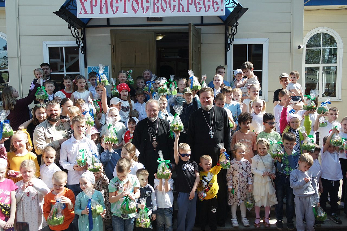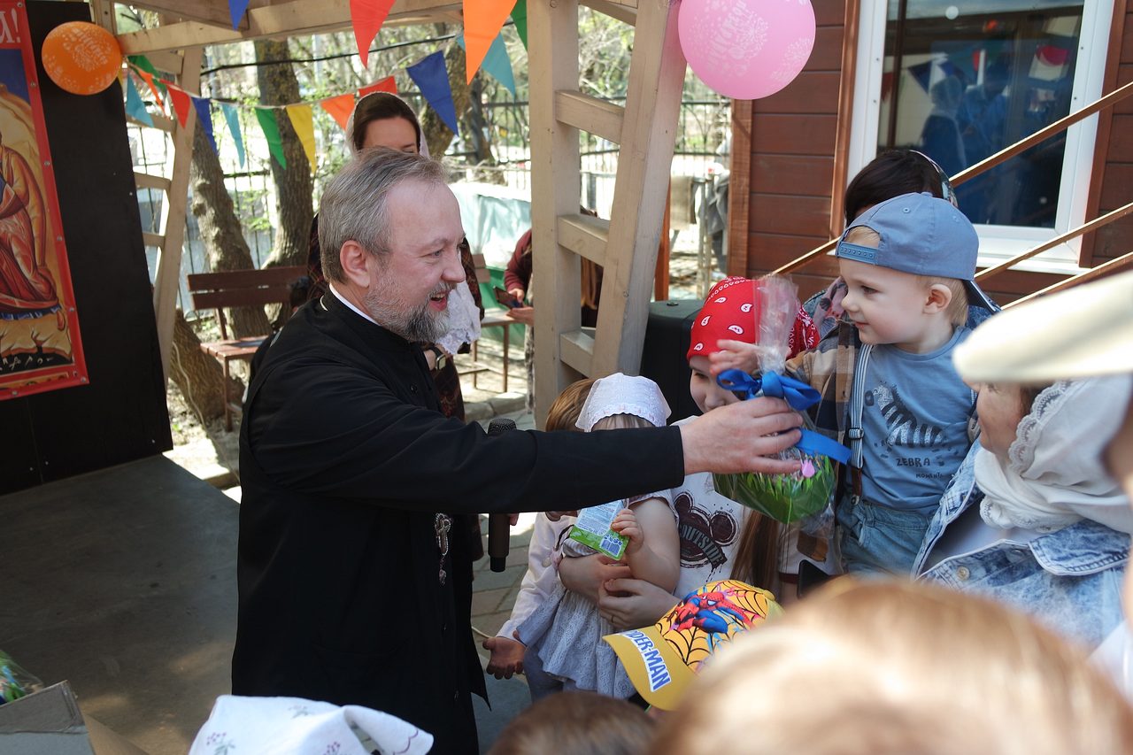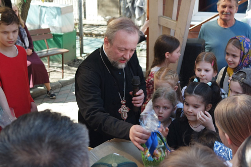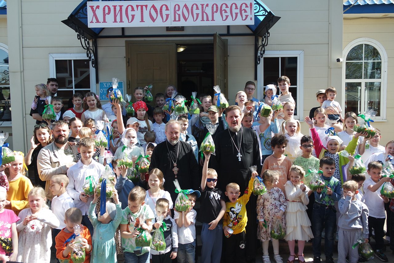 По завершении праздника настоятель храма поблагодарил детей за выступление, вручил каждому ребёнку подарки и еще раз поздравил детей и родителей со Светлым Христовым Воскресением.