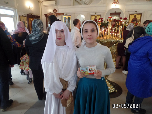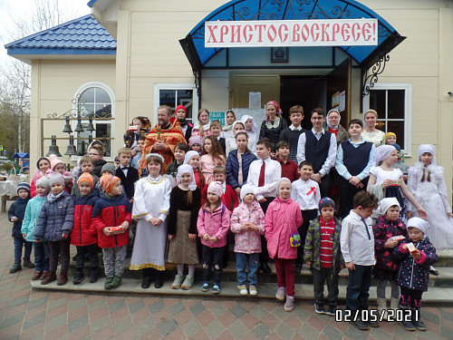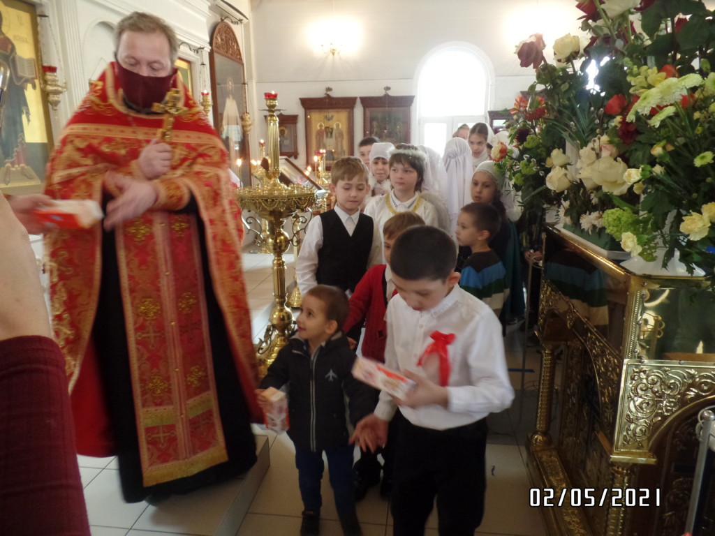 2 мая 2021 года, в день Светлого Христова Воскресения, в храме священномученика Серафима, митрополита Петроградского, в Южном Бутове состоялся праздничный Пасхальный молебен с причащением детей.