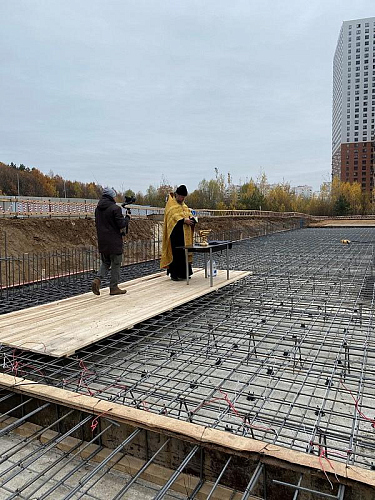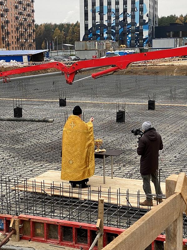 30 октября по приглашению руководства и тружеников строительной фирмы «Группа Эталон» настоятель храма святого праведного воина Феодора Ушакова в Южном Бутове игумен Дамиан (Залетов) совершил молитву перед началом строительства общеобразовательной школы и освятил закладку нового учебного здания.