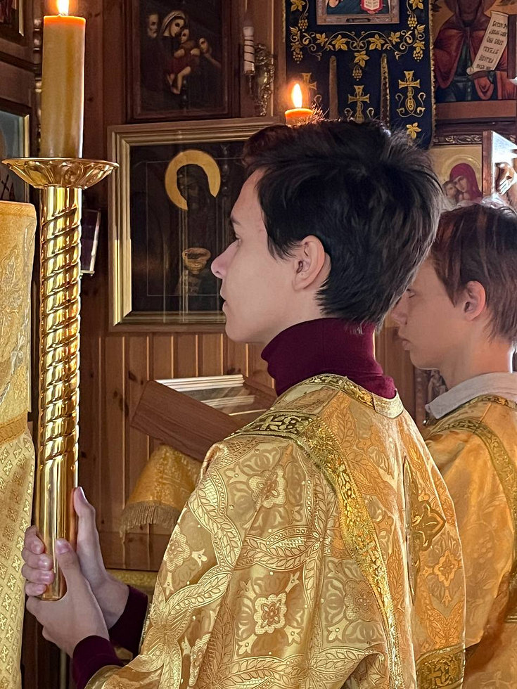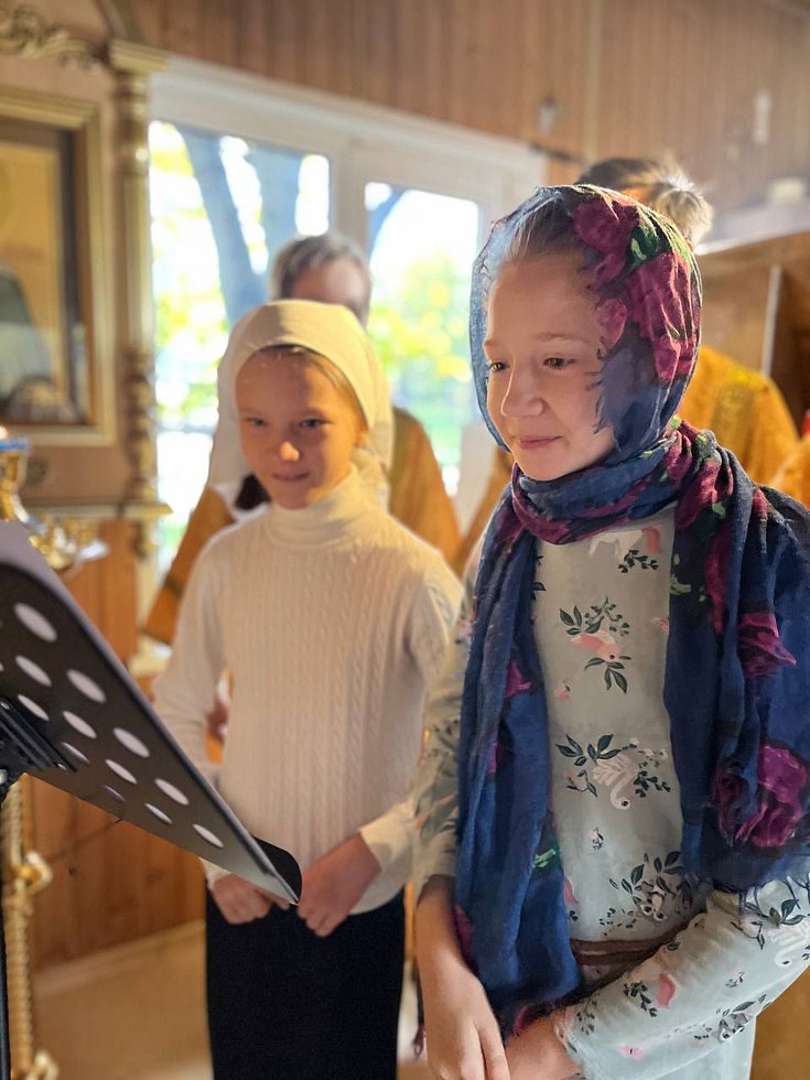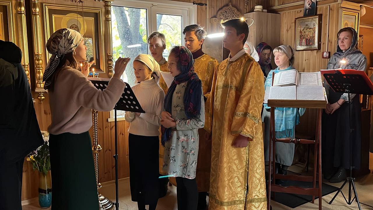 Под руководством регента Виктории Писаренко ребята исполнили антифоны “Хвали душе моя Господа” и “Единородный сыне” знаменного распева.