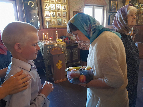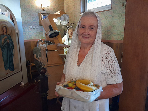 Сегодня после праздничной Божественной Литургии настоятель храма иерей Игорь Шаров совершил Чин освящения плодов, после чего часть освященных фруктов и овощей пожертвовали пожилым прихожанам.