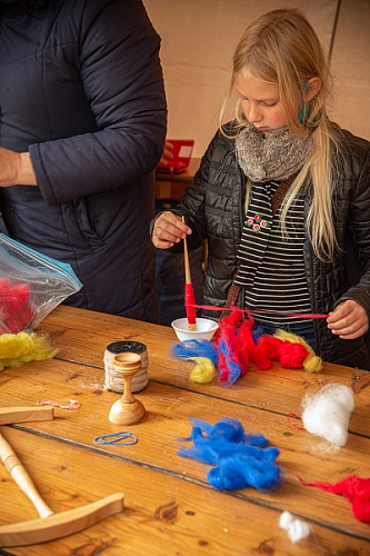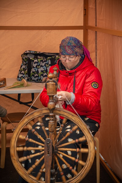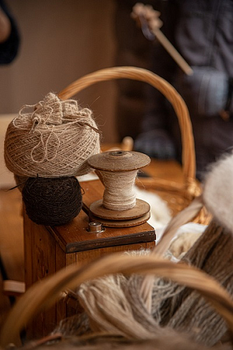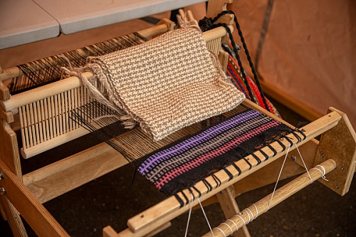 Клуб ткачества и прядения «Ткачики» провели мастер-классы, на которых можно было своими руками прочесать шерсть, скрутить нитку, соткать узор и сделать набойку листьями на ткань.