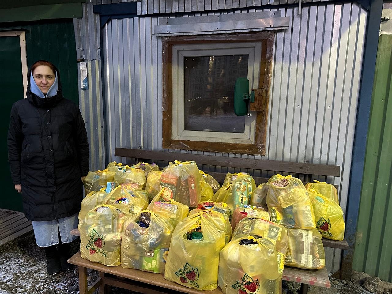 Всего был роздано 30 наборов (сахар, мука, масло растительное, макароны, крупы и сладости).