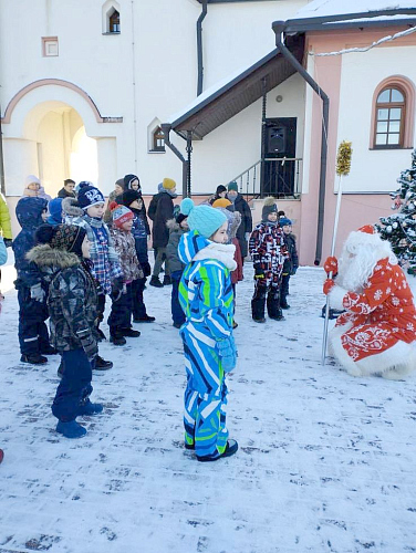 В этот раз, сразу после утренней Рождественской службы самых маленьких прихожан храма пришёл поздравить Дед Мороз.