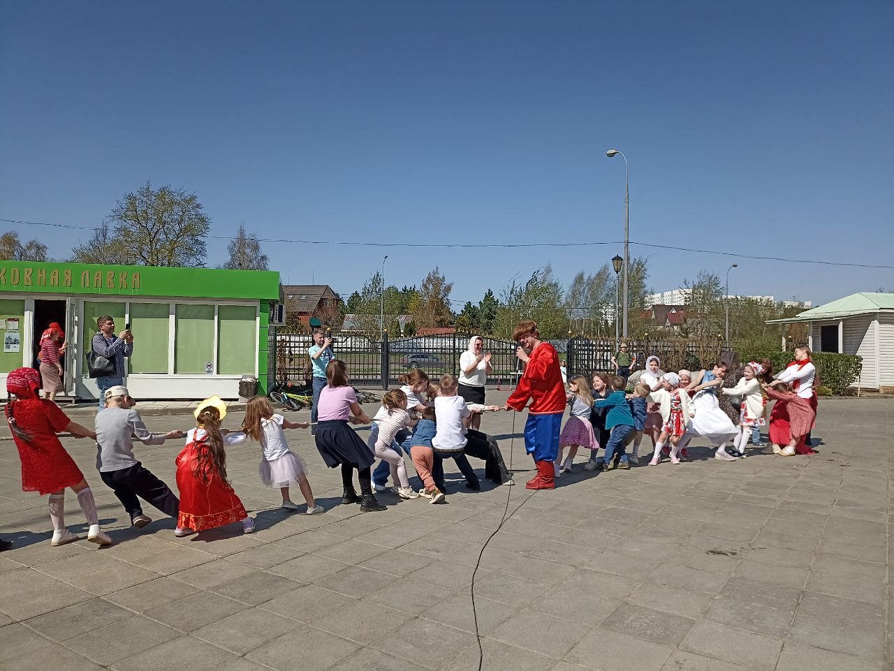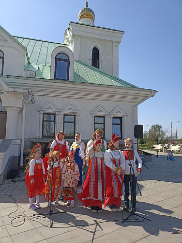 Утром по окончании Божественной литургии на территории храма прошел Пасхальный праздник, который начался выступлением приходского коллектива «Веретенце». Прозвучали пасхальные стихи и русские песни. В радостной атмосфере праздника водили хороводы, участвовали в играх и забавах.