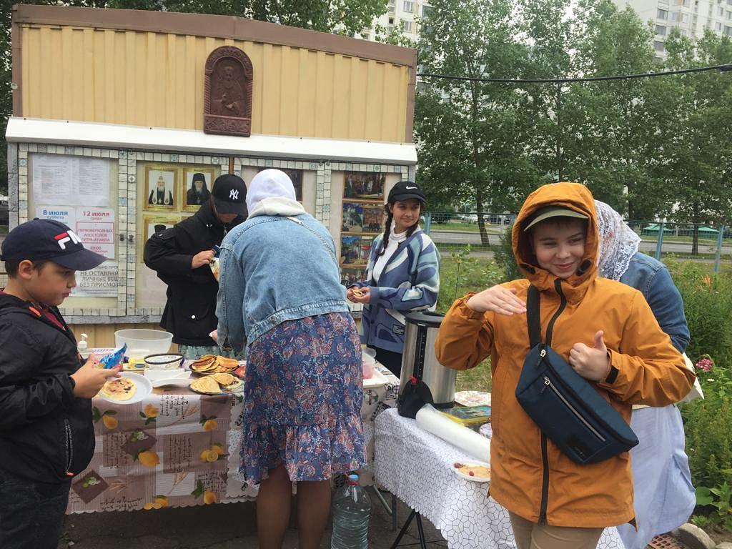 12 июля 2023 г., в день памяти славных и всехвальных первоверховных апостолов Петра и Павла, после Божественной литургии молодеж храма сщмч. Владимира, митр. Киевского и Галицкого в Южном Бутово, приготовила праздничное угощение для всех желающих.