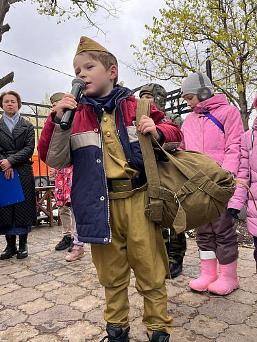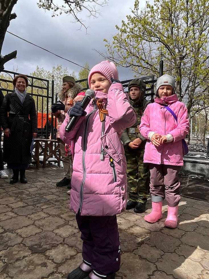 После чего дети исполнили стихи и песни военных лет. Учащиеся театральной студии под руководством педагога Екатерины Андреевны Шараповой совместно прочитали “Реквием” (Вечная слава героям) Роберта Рождественского.