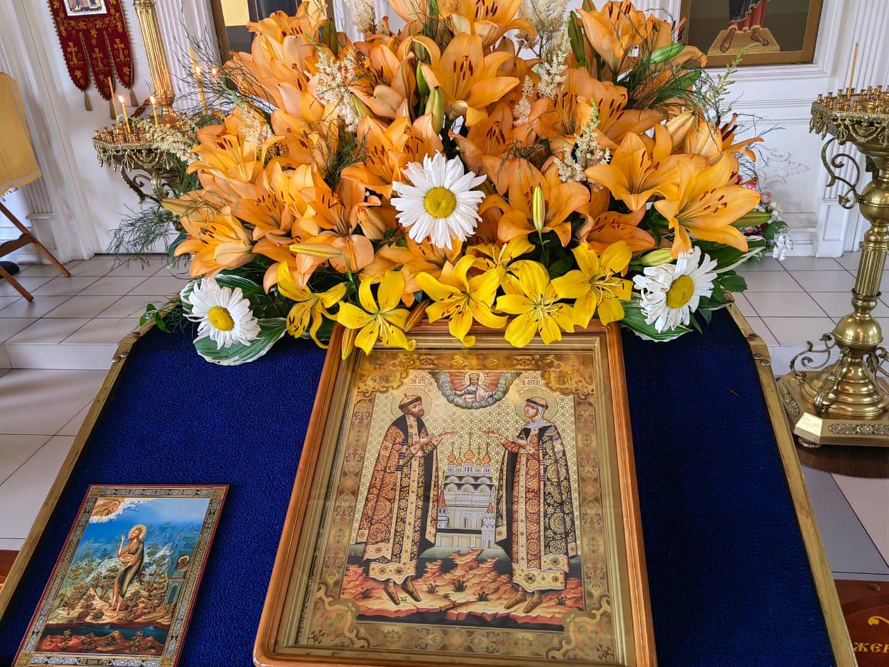 После Божественной литургии был совершён молебен перед иконой святых Петра и Февронии. Во время молебна настоятель и прихожане просили покровительства святых в укреплении семьи, верности и любви. После молебна священник окропил всех Святой водой.