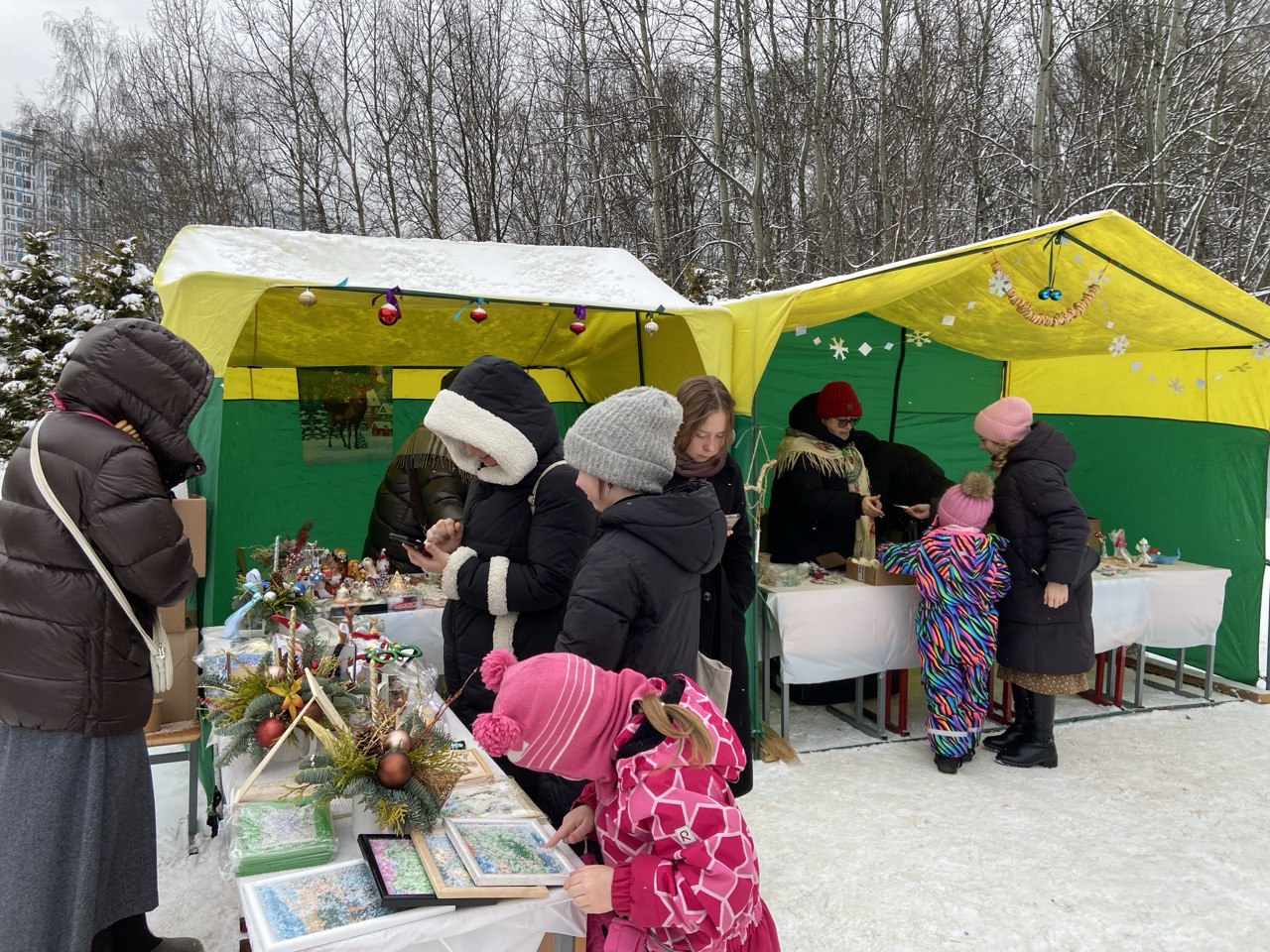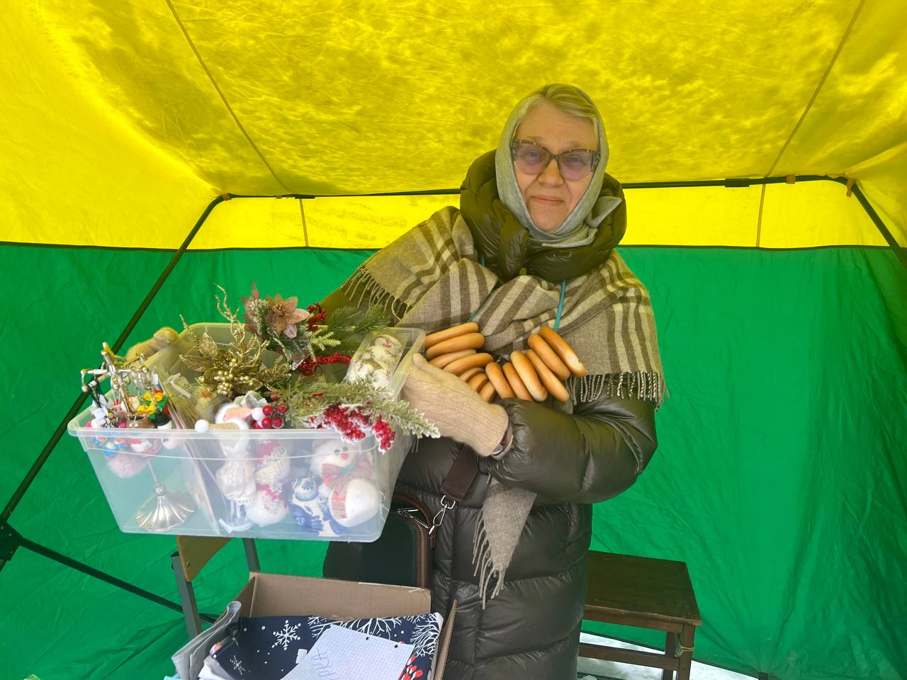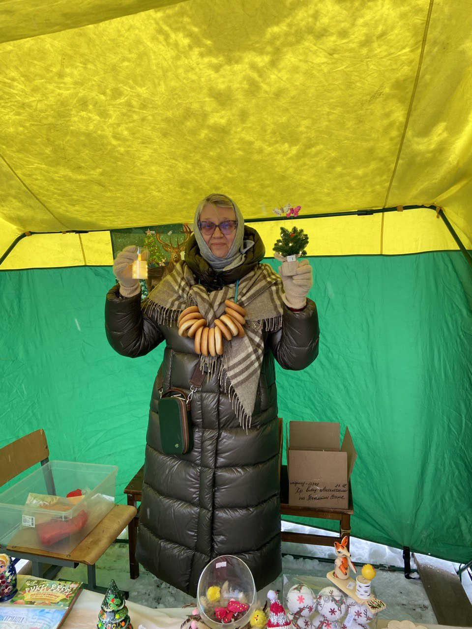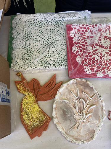После Божественной Литургии прихожанам были предложены поделки и сувениры, созданные детьми Воскресной школы, а также добровольцами социальной службы. Поделки — в основном игрушки на елку — были изготовлены из глины, гипса, бумаги, шерсти, а также из натурального камня, дерева и живых веточек ели.