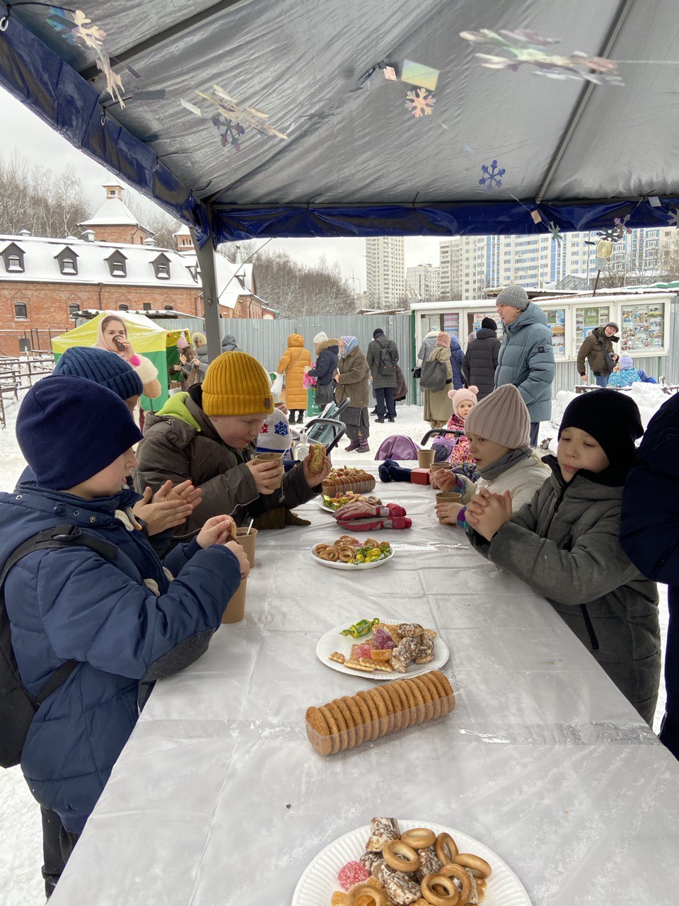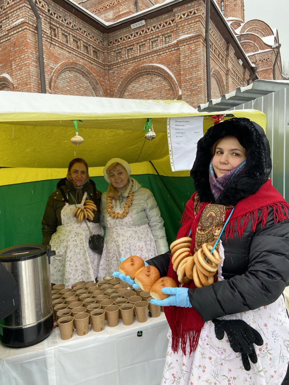 Также прихожане могли приобрести горячий чай и пирожки.