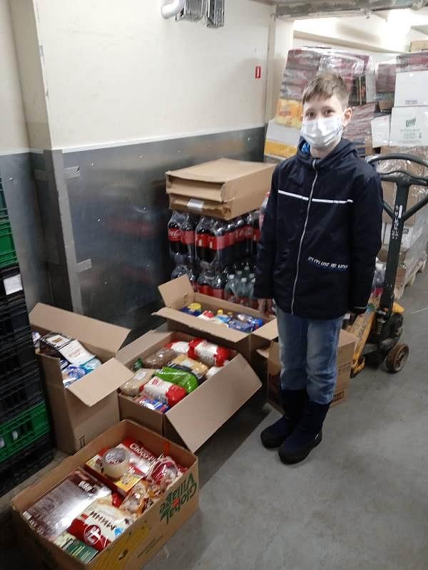 18 декабря 2021 года, накануне Международного дня помощи бедным, учащийся Воскресной школы храма святого адмирала Феодора Ушакова в Южном Бутове Леонов Саша и Леонова Елена Александровна (мама) приняли участие в качестве волонтеров в самом масштабном благотворительном продовольственном марафоне г. Москвы «Корзина доброты».