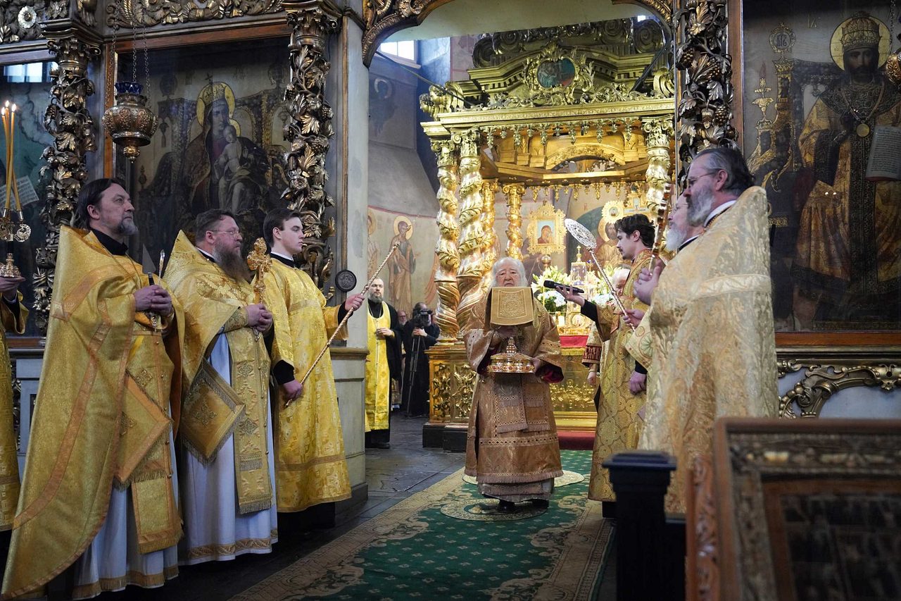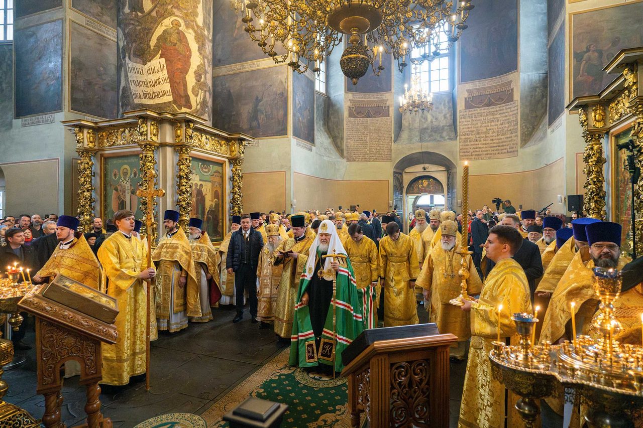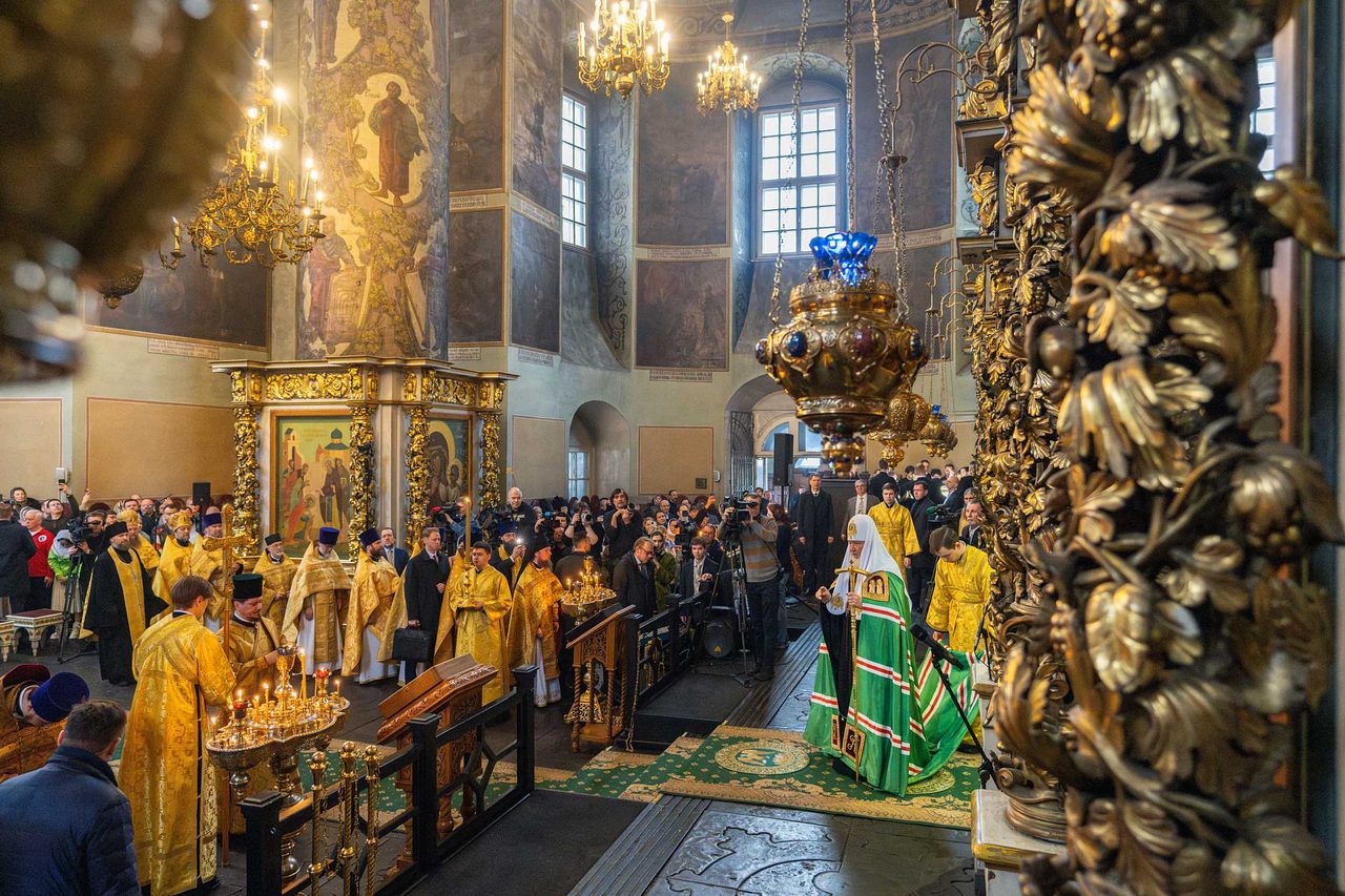 В Большом соборе Донской обители Предстоятель Русской Православной Церкви поклонился мощам святителя Тихона и совершил Божественную литургию святителя Василия Великого.