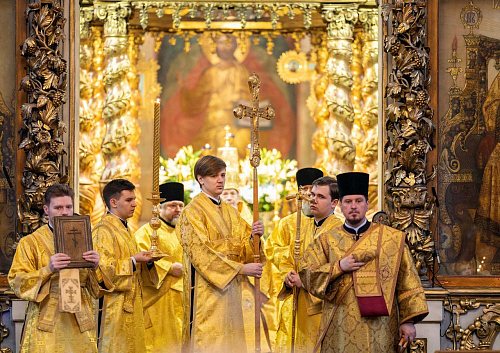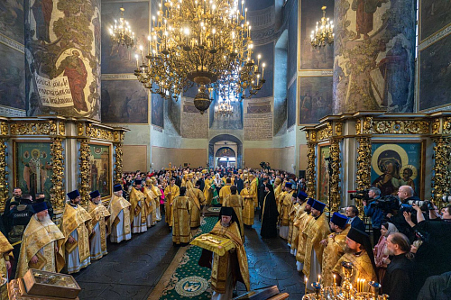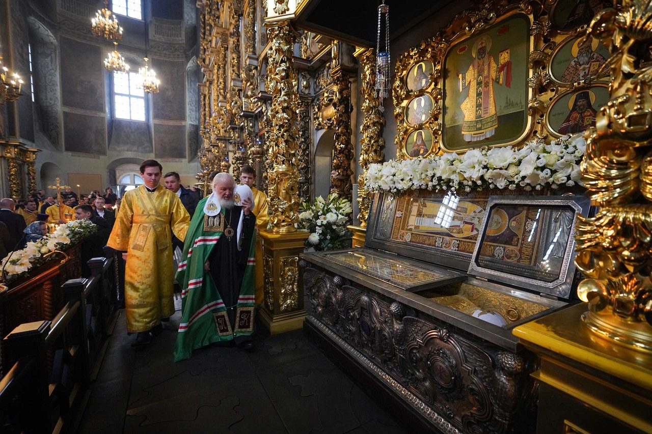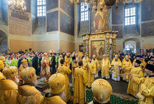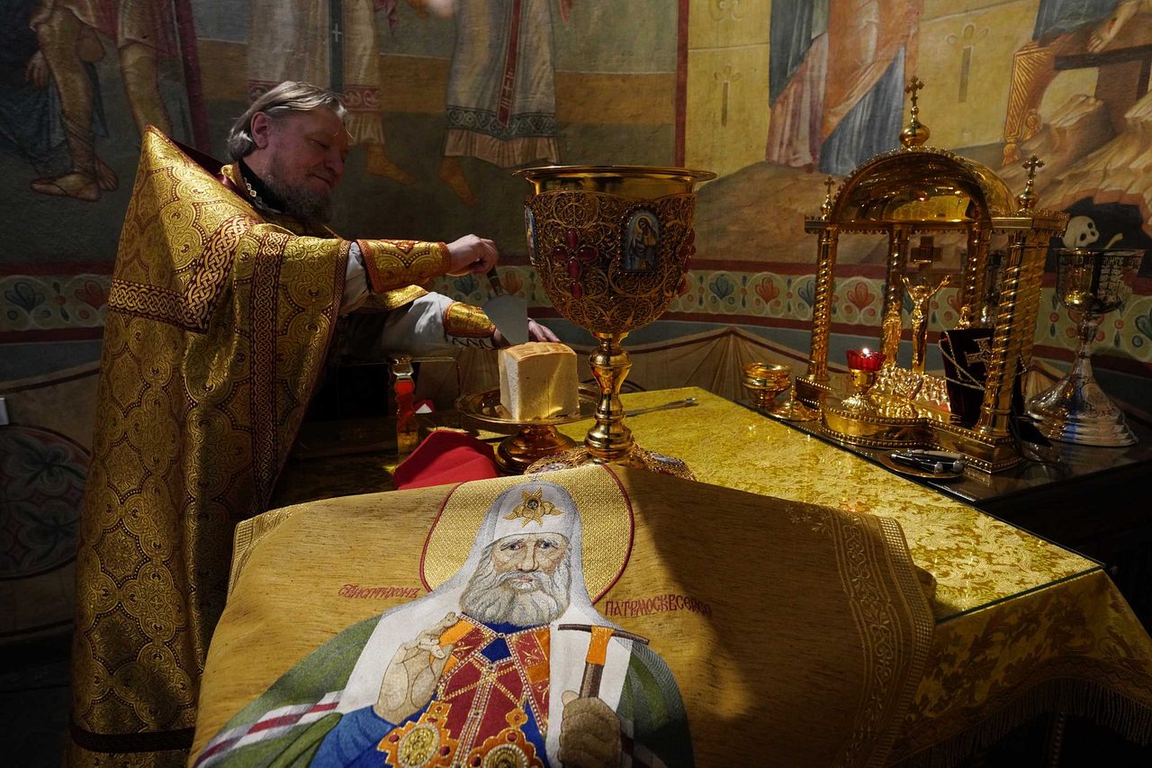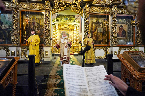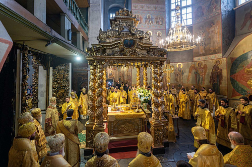 В Большом соборе Донской обители Предстоятель Русской Православной Церкви поклонился мощам святителя Тихона и совершил Божественную литургию святителя Василия Великого.