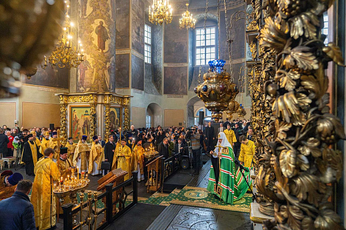 На сугубой ектении были вознесены особые прошения, Предстоятель Русской Православной Церкви прочитал молитву о Святой Руси.