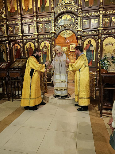 По окончании Божественной литургии Преосвященный Пантелеимон сказал проповедь и преподал прихожанам свое архипастырское благословение на дальнейшие труды во Славу Божию.