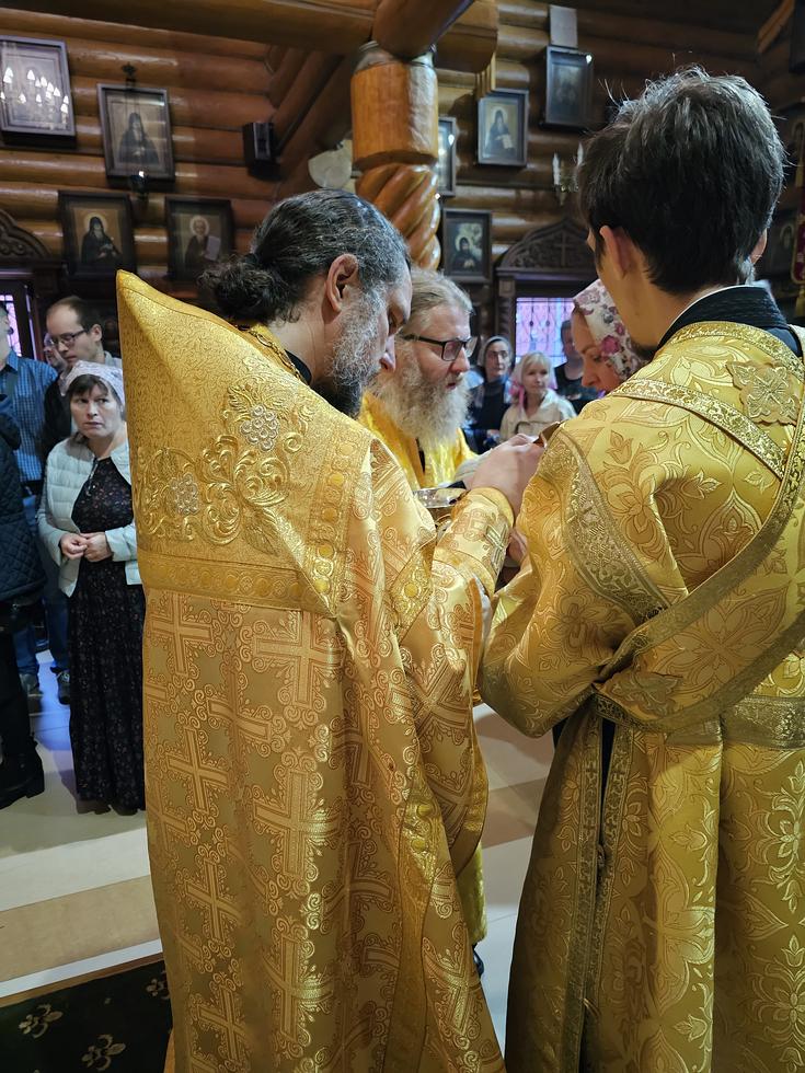 За Божественной литургией Преосвященному Пантелеимону сослужили: и.о. настоятеля храма Всех преподобных отцев Киево-Печерских иерей Алексей Ишков, клирики храма иерей Антоний Фукс и иерей Евгений Фирса, диакон Дмитрий Иванов, клирик храма Успения в Косино, диакон Игорь Куликов, диакон Дмитрий Коновалов, клирик храма Царевича Димитрия при Первой градской больницы.